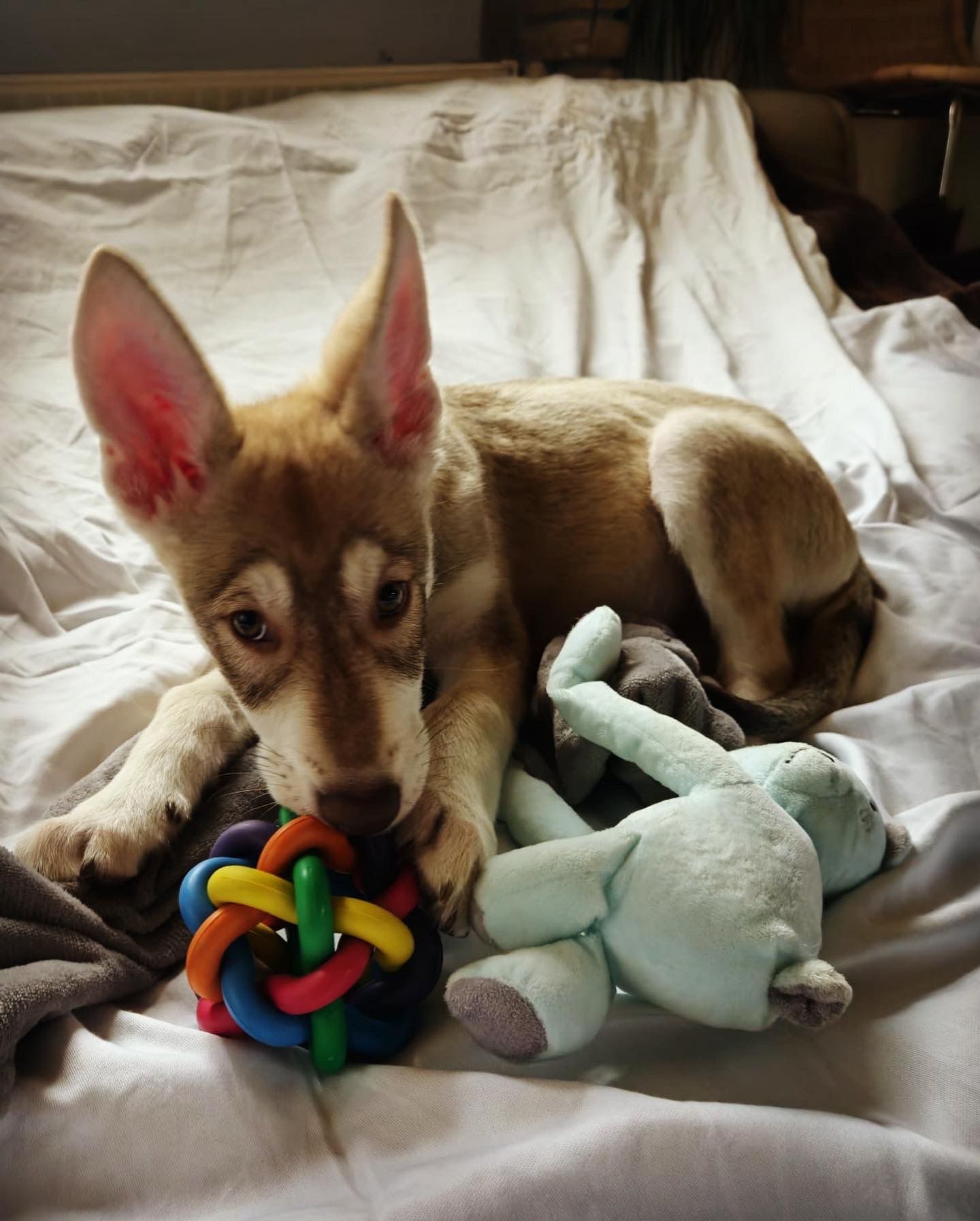 Wir lieben unseren Wolfshund über alles, er hat in hand umdrehen unser aller Herzen erobert. Er ist so schmusen bedürftig und schläft jede Nacht mit im Bett, er ist vorsichtig bei fremden Menschen und lässt sich nicht streicheln, was wir persönlich super gut finden. Ich habe mein lebenslang schon Hunde aber dies ist mein erster Wolf und ich muss sagen, es ist das beste was mir je passieren konnte, so treu und lieb das ist der Wahnsinn. Mit Kindern ist er ein Traum ❤️