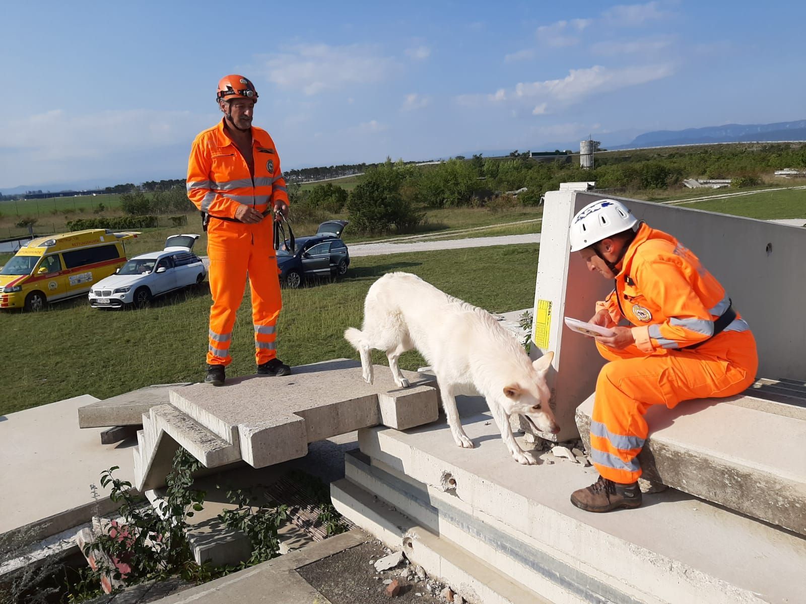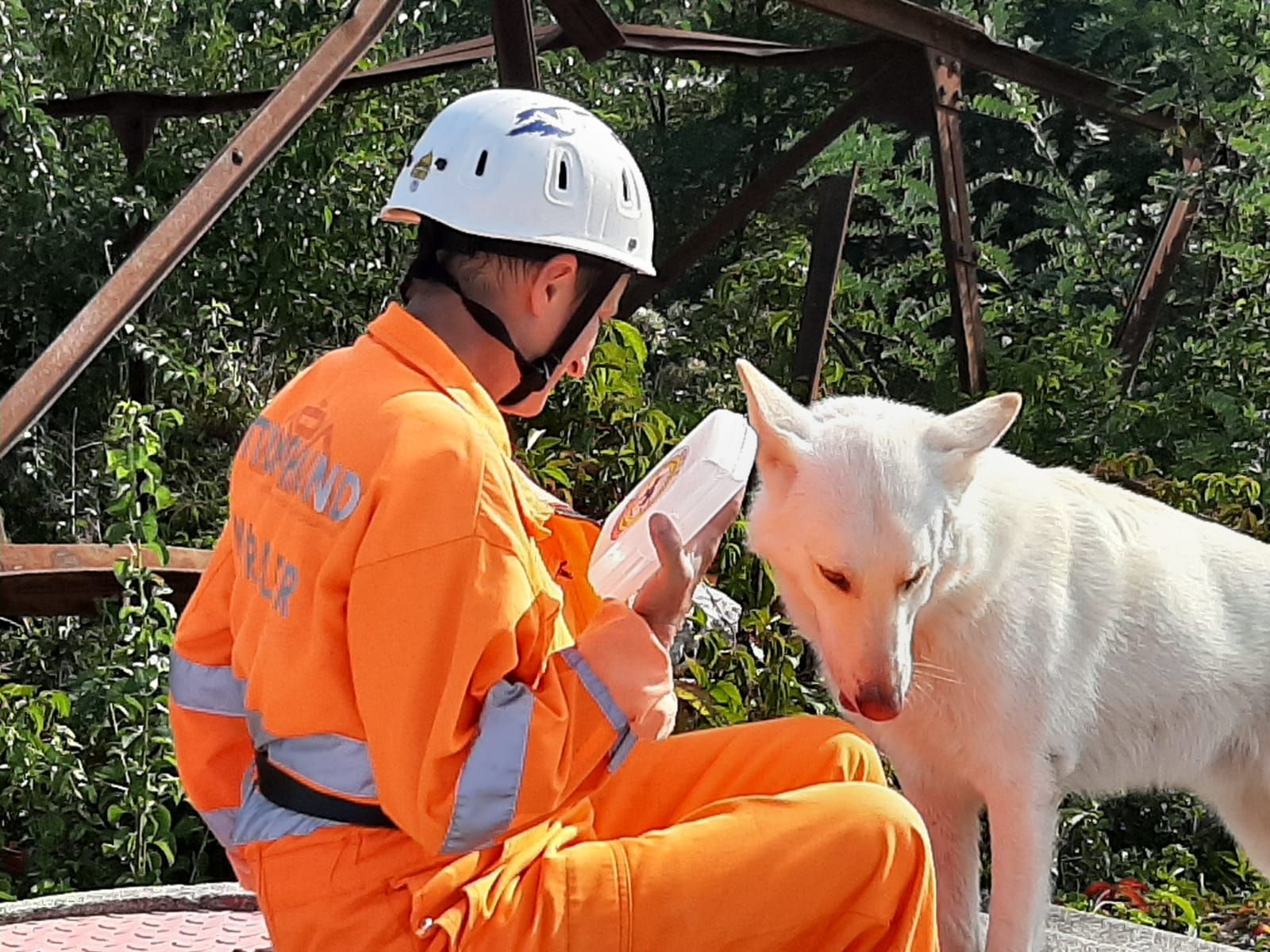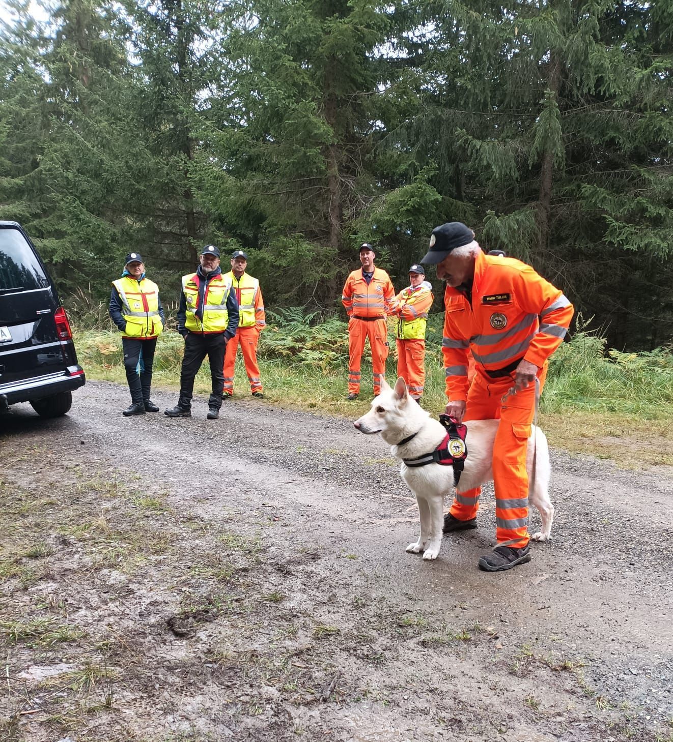 Mantrailing Ausbildung hat ca. 3Jahre gedauert. Menschen suchen in Stadt und Umgebung wird trainiert. Im Wald wird Flächensuche und Wegsuche ohne Leine gelernt,auch Trümmersuche ist Teil der Ausbildung.
